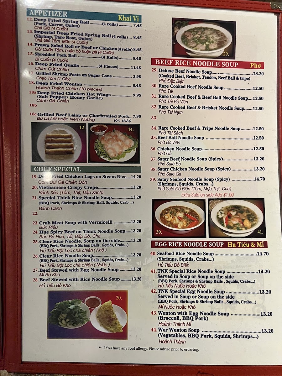 TNK Vietnamese Restaurant Menu (Update 2025)